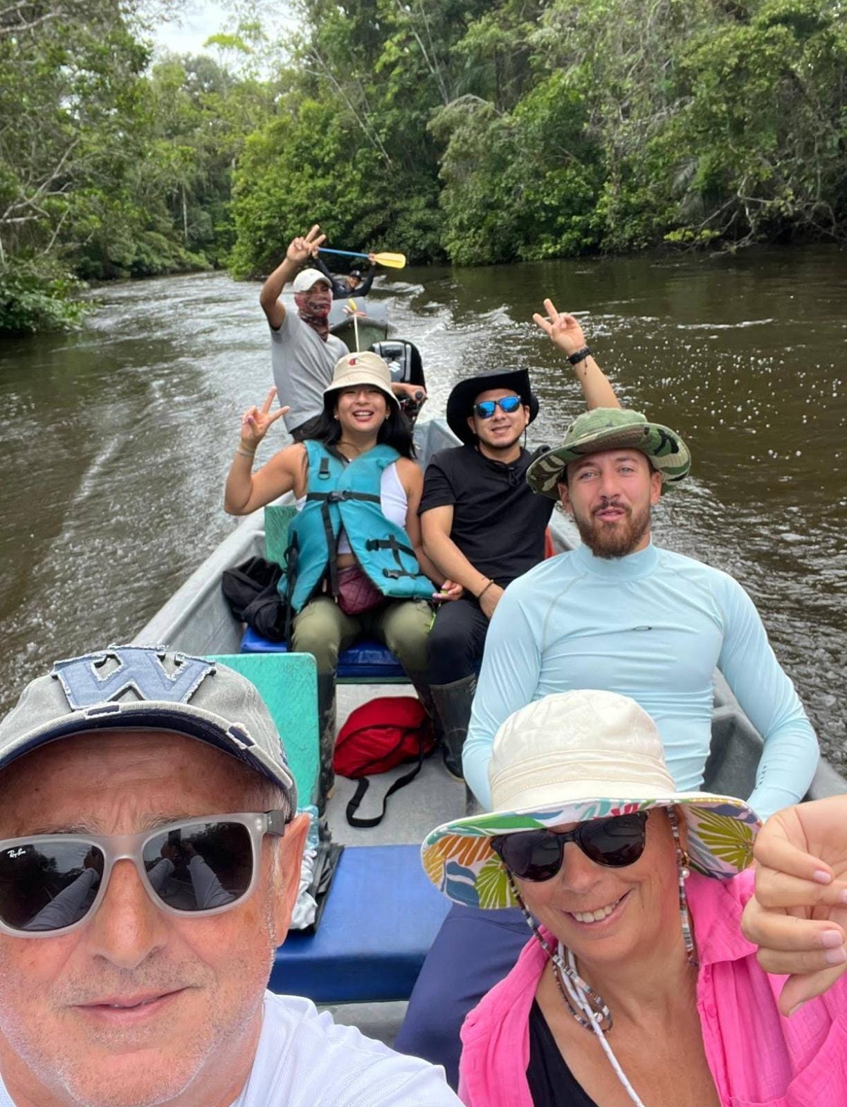You may encounter pink river dolphins, monkeys, caimans, anacondas, toucans, and many more species in the rainforest.